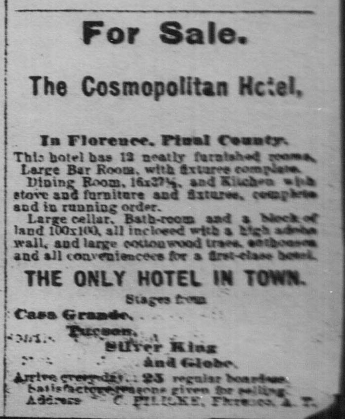 First, he has to go to Blake & Company Assayers to see if he has enough to purchase the Cosmopolitan Hotel in Florence, Pinal County.