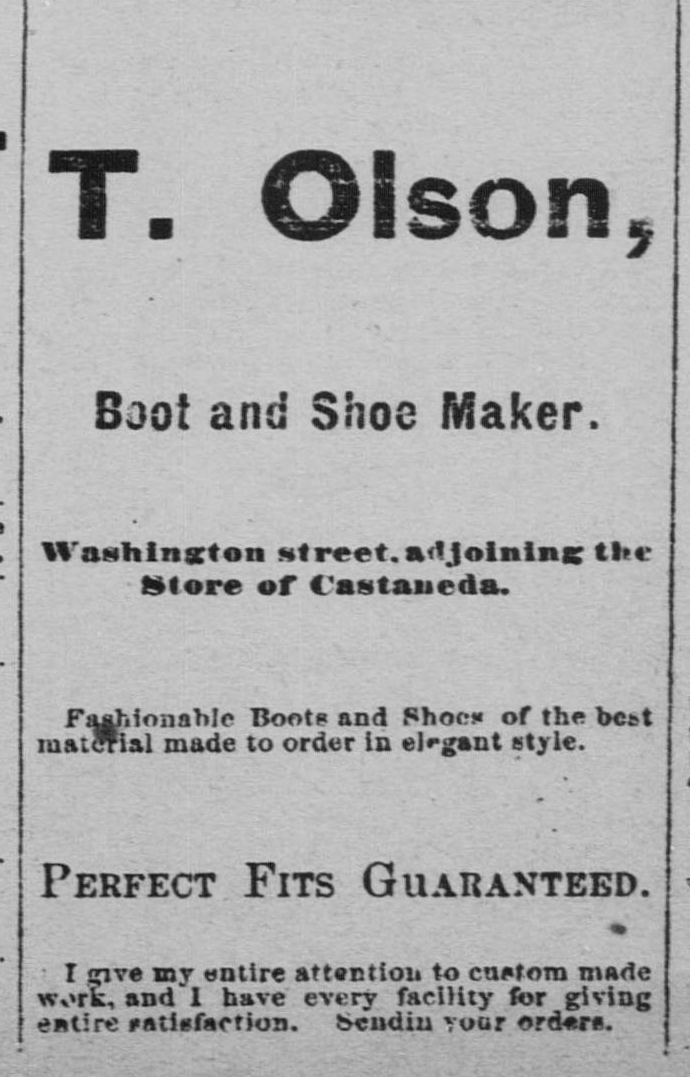 Going to a party? Do you need a new pair of boots? Ask T. Olson to make you a new pair. The perfect fit is guaranteed.